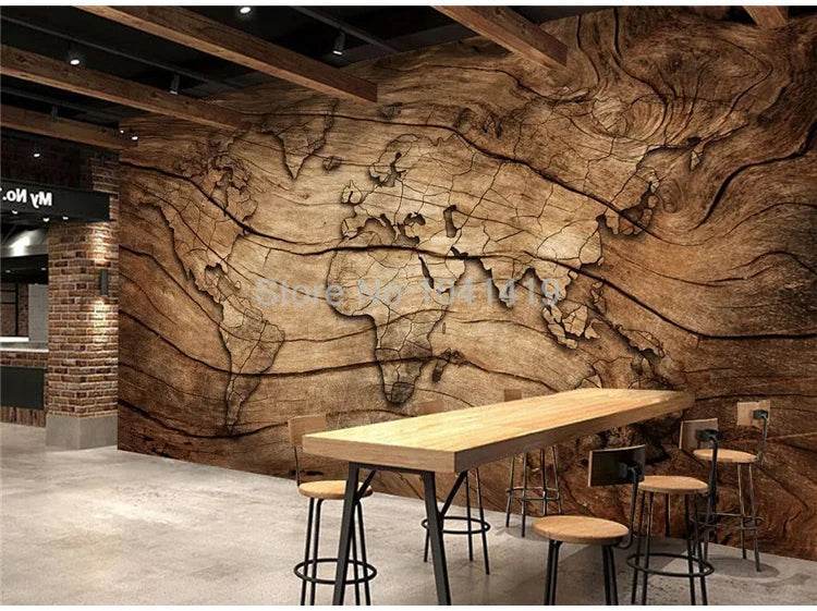 Bring the world into your home with the Custom 3D Wood Grain World Map Mural Wallpaper. This stunning piece is more than just wallpaper; it's a work of art that adds a unique touch to any room. Expertly crafted with a realistic wood grain texture, this mural transforms your space into a captivating visual experience.