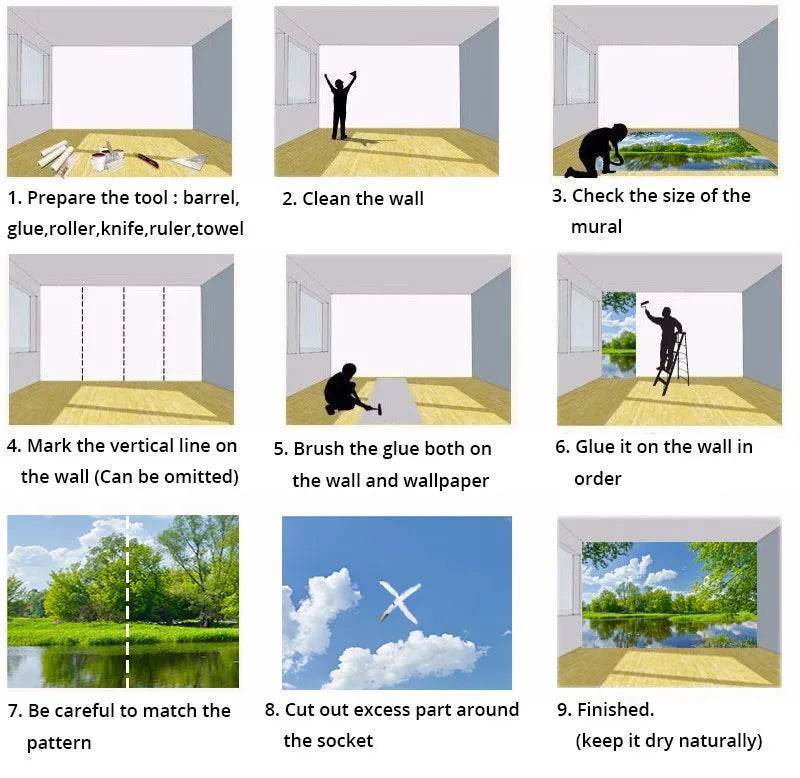 Customizable Options: Choose from a variety of textures such as Silk Cloth, Waterproof Canvas, Self-adhesive PVC, and more. Available in multiple dimensions to fit your space perfectly.