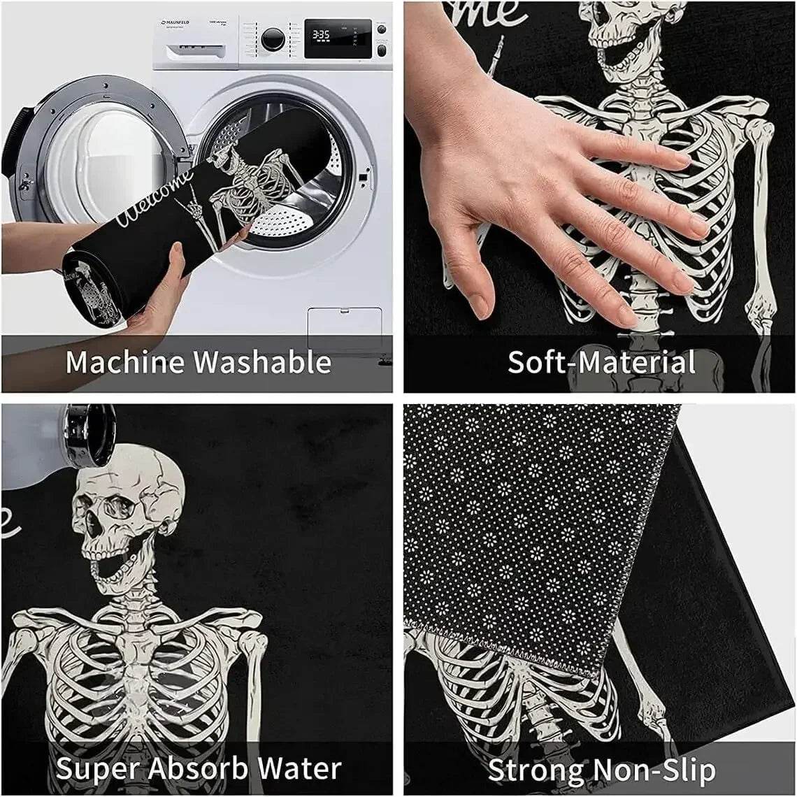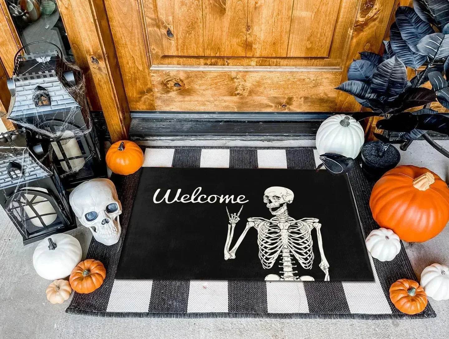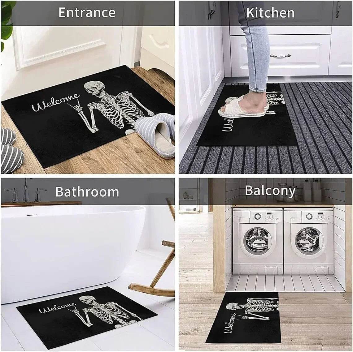 Step into the spooky season with the Funny Home Skull Skeleton Halloween Doormat. Perfect for adding a touch of humor to your doorstep, this doormat features a playful skeleton design that greets guests with a cheeky "Welcome" message. It's an ideal choice for those who love to celebrate Halloween with a fun twist.