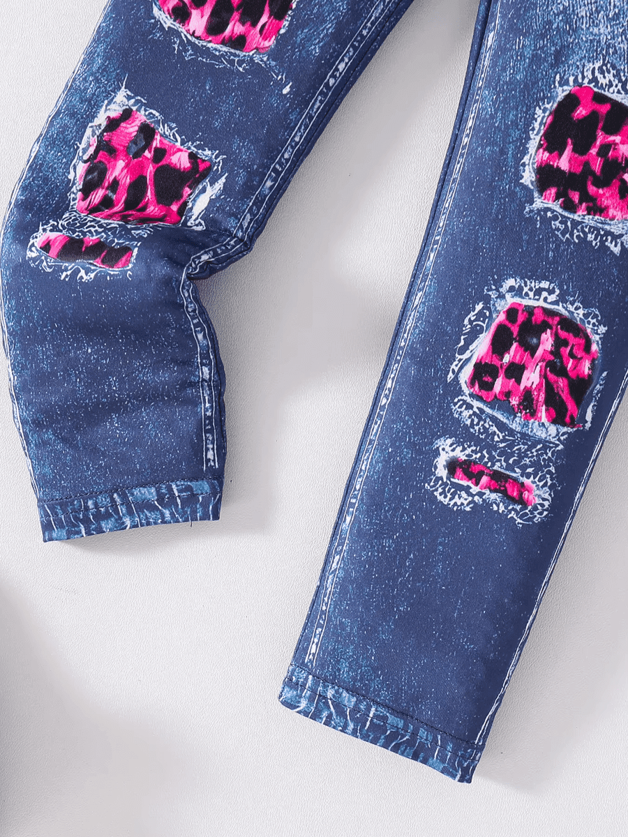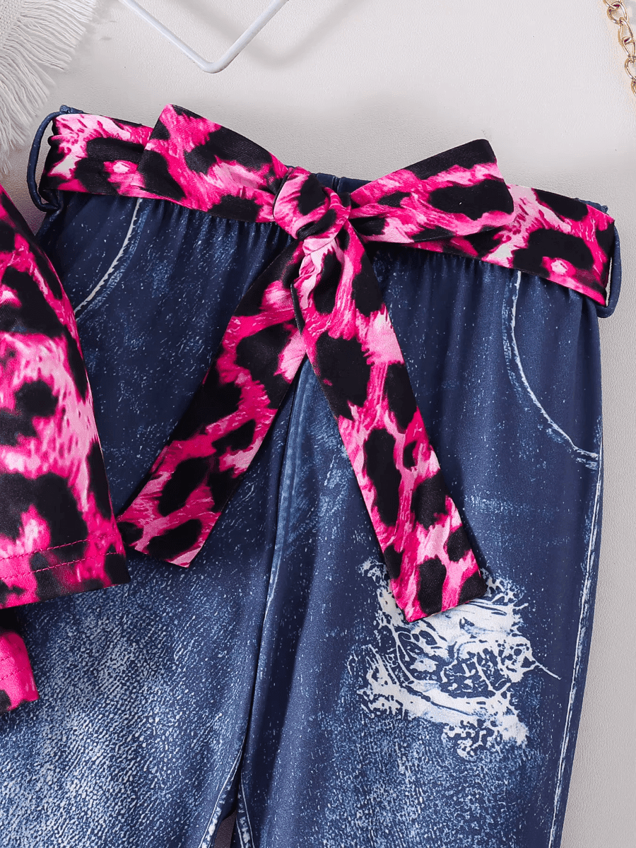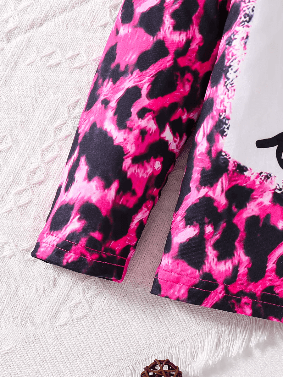 Stylish & Fun: Girl Fashion Pink Leopard Slim Pants Clothing Set