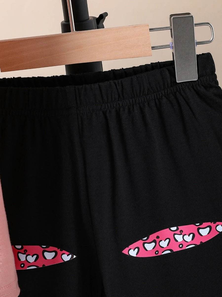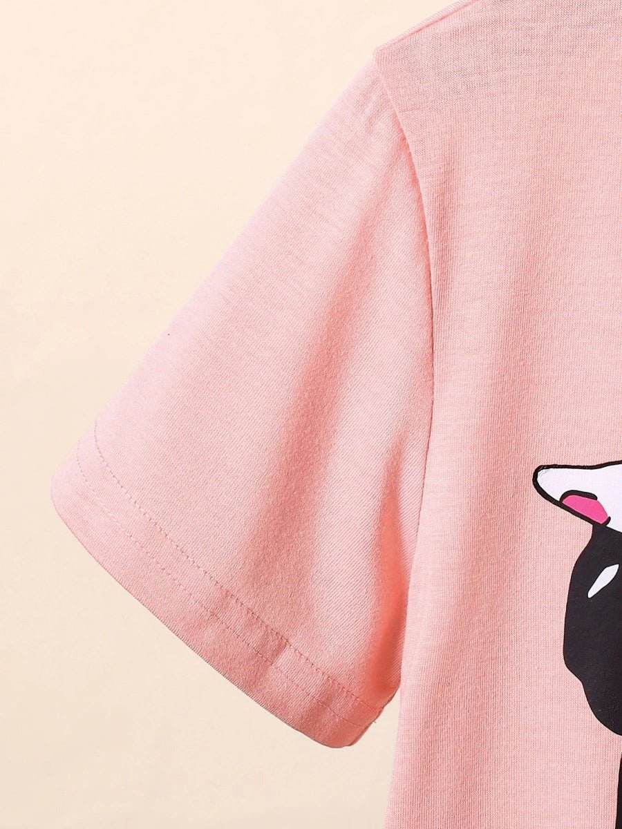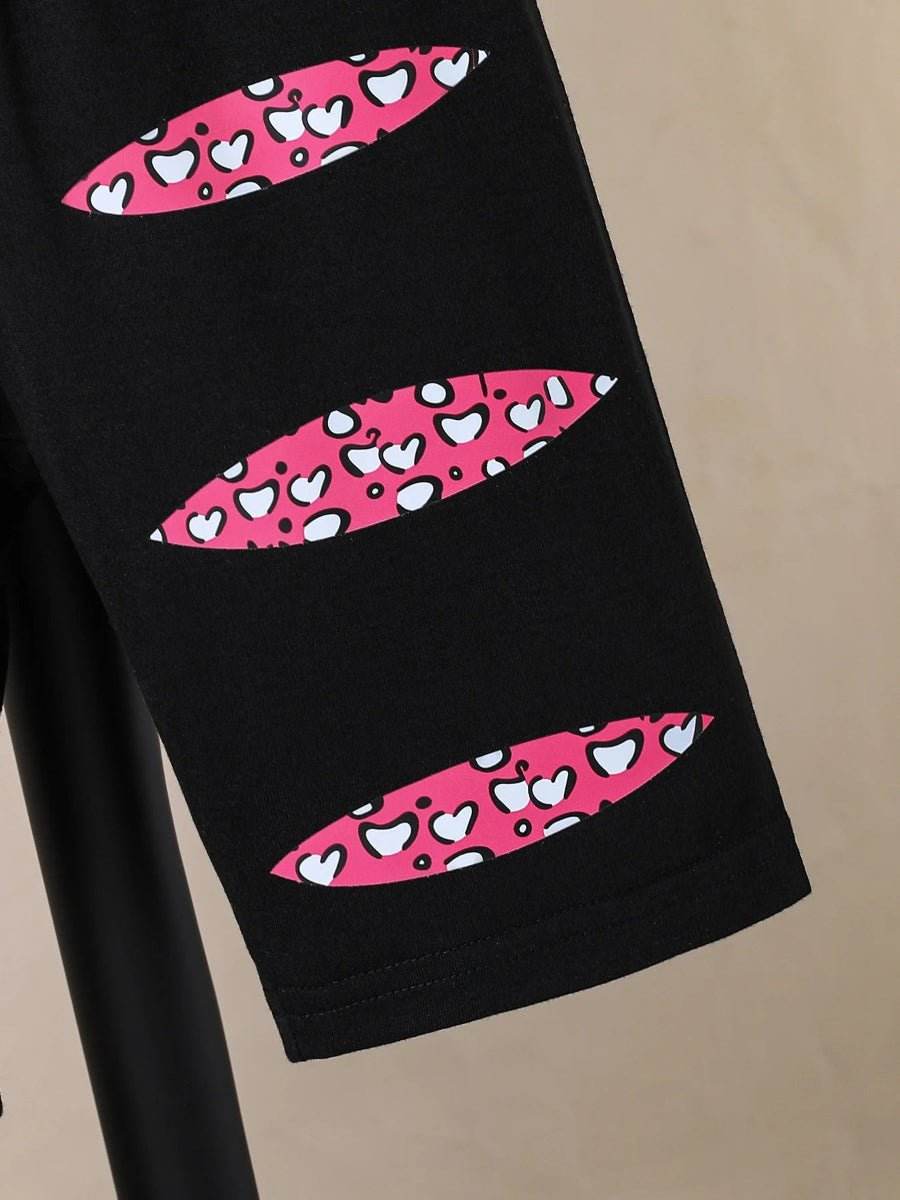 The outfit features a charming pink t-shirt adorned with a graphic design, paired with black shorts that have matching pink accents. This playful combination is perfect for expressing your child's unique style. The set is available in various sizes, catering to kids aged 8 to 12 years, ensuring a perfect fit for your growing child.