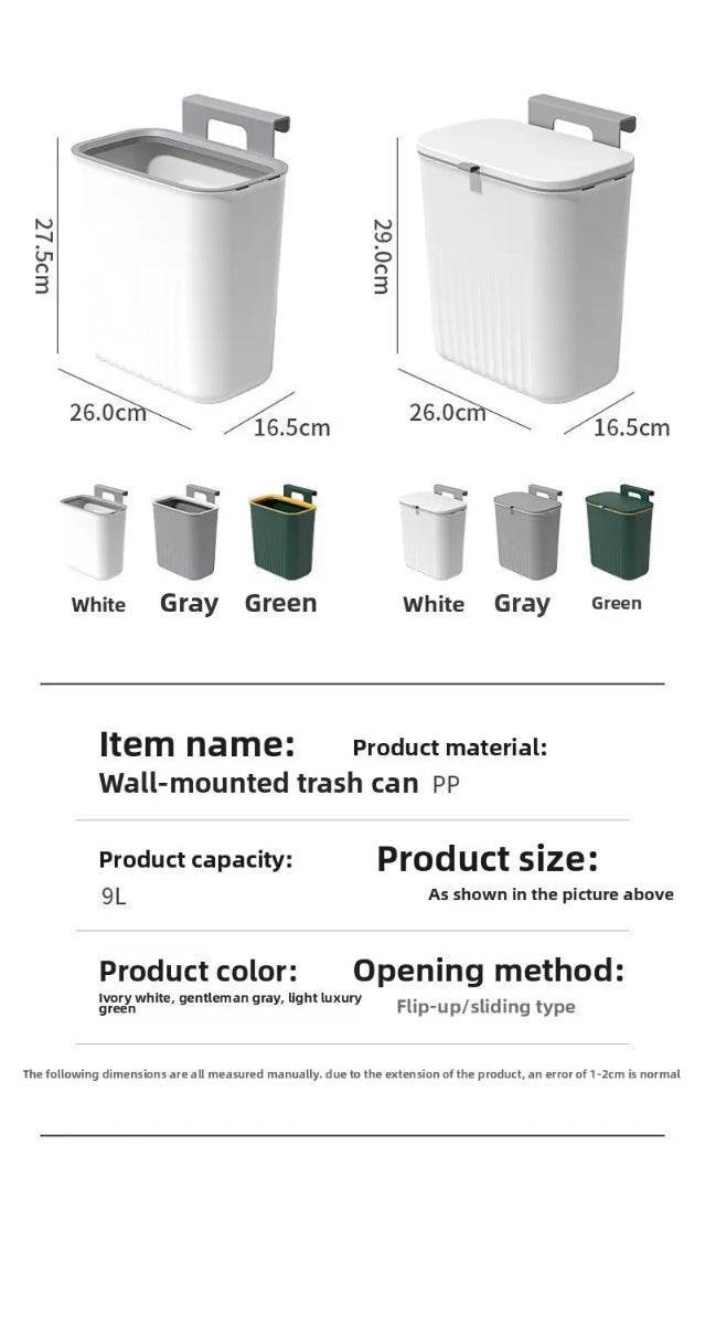 Featuring a sleek, wall-mounted design, this storage can fits seamlessly into any kitchen decor. Available in elegant colors like grey, green, and white, it complements a variety of kitchen styles. Its compact size (26x27.5cm) ensures it fits perfectly in small spaces, while its portability allows for easy movement and placement wherever you need it most.