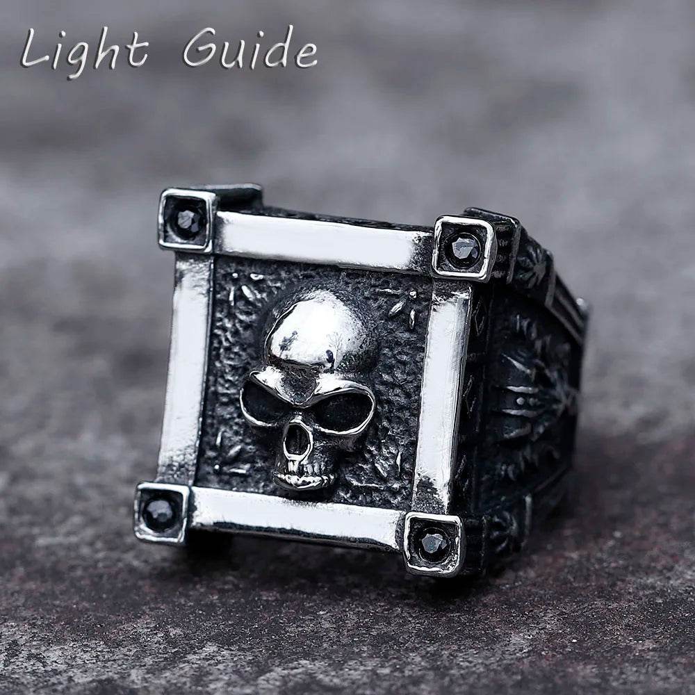 Light Guide is known for its high-quality men's fashion accessories, and this ring is no exception. Available in sizes 8 to 13, it offers a comfortable fit for every warrior. The robust titanium steel construction ensures it withstands the test of time, while the striking skull motif adds an edgy flair to any outfit.