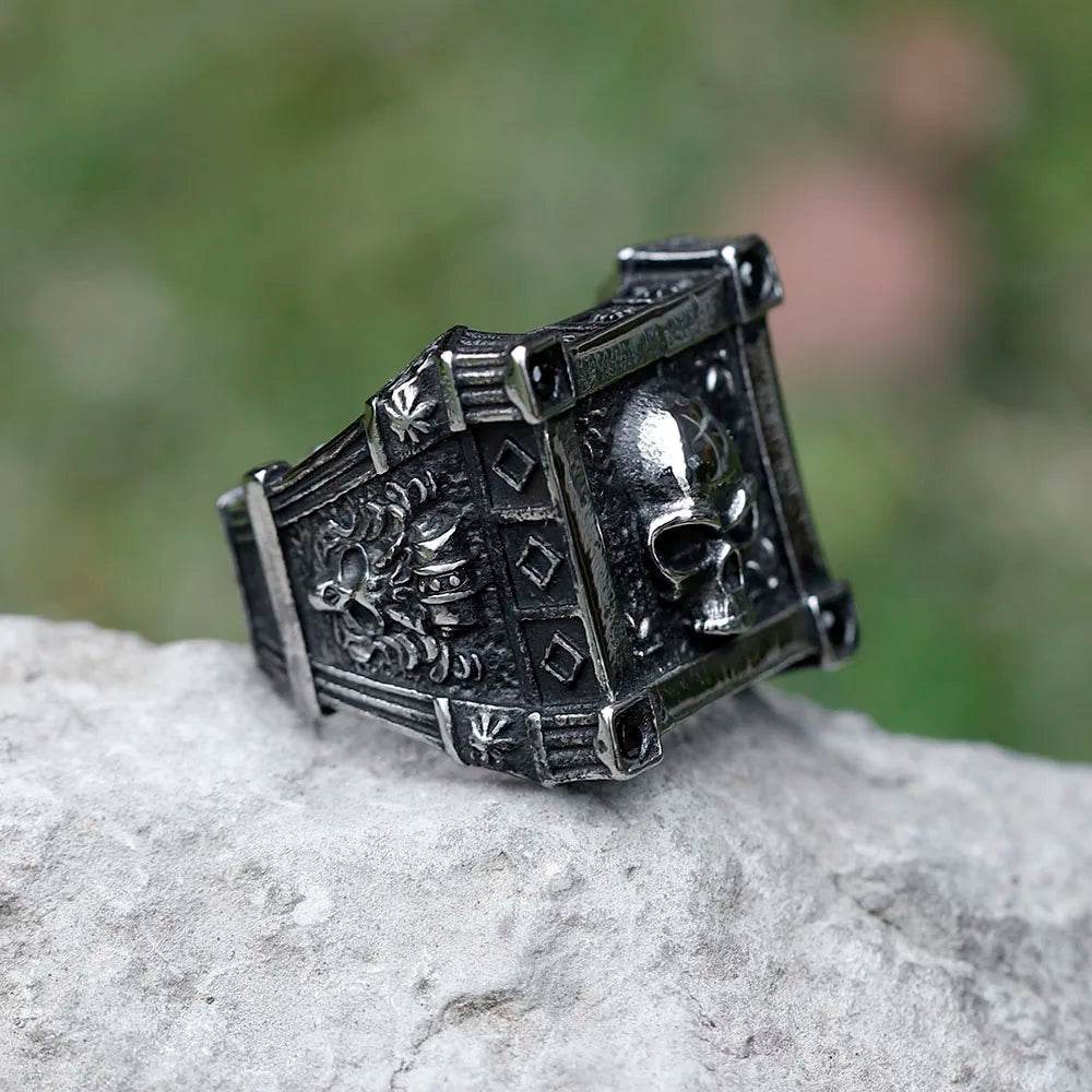 Step into the world of bold fashion with the Men 316L Stainless Medieval Viking Skull Ring. Crafted from durable 316L stainless steel, this ring is designed for those who dare to stand out. Its intricate skull design is a nod to Viking and medieval aesthetics, making it a perfect accessory for anyone looking to add a touch of rebellion to their style.