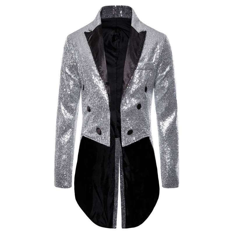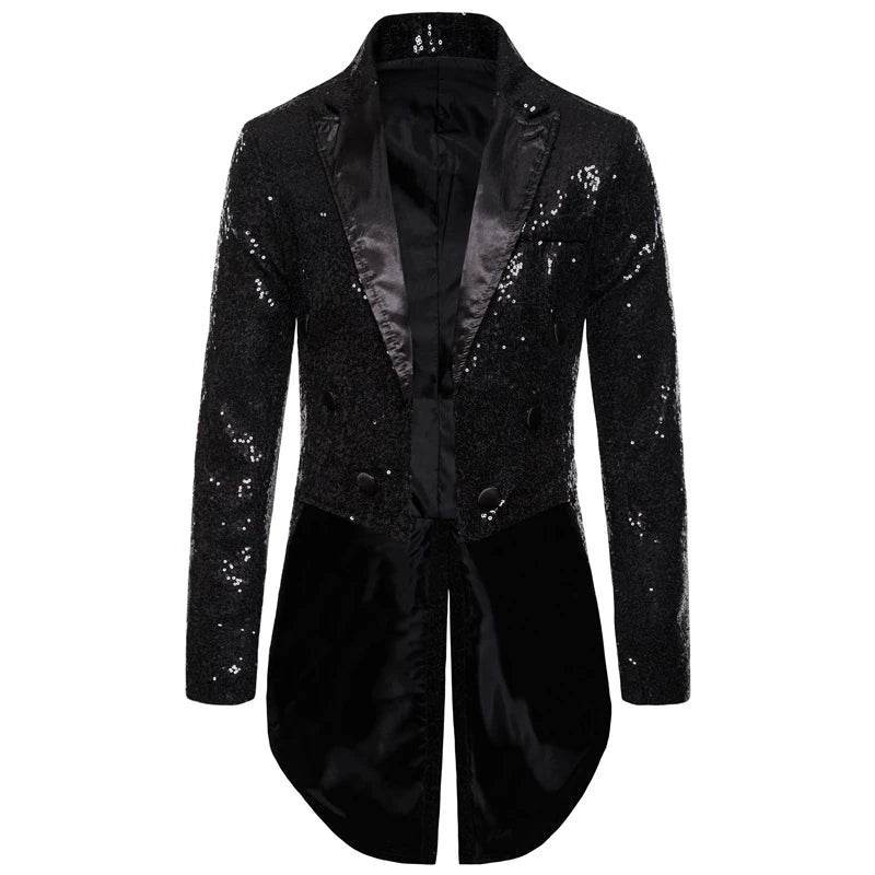 The Men Sequin Embellished Tuxedo Blazer Jacket is your ticket to turning heads at any event. With shimmering sequin embellishments, this blazer adds a touch of glamour and sophistication to your wardrobe. Whether you're attending a wedding, prom, or a high-profile party, this jacket ensures you stand out with confidence.