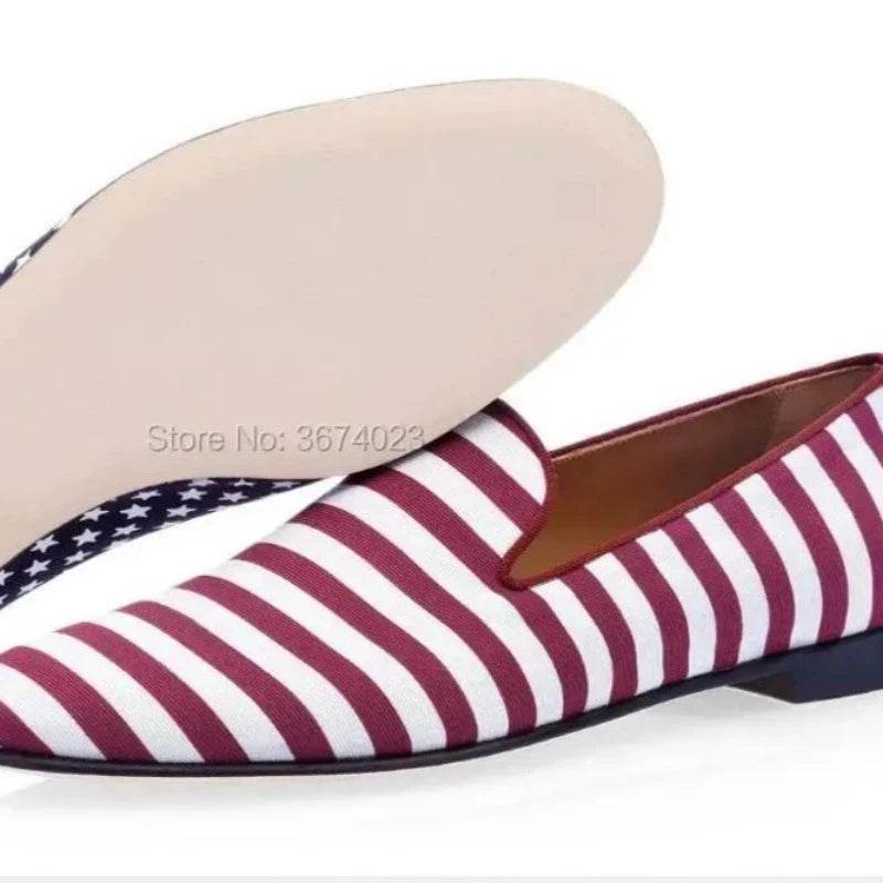 Crafted with a convenient slip-on design, these loafers make dressing up a breeze. The unique pattern of stripes and stars not only catches the eye but also complements a variety of formal outfits. Available in multiple colors and sizes, you can find the perfect fit to match your style.