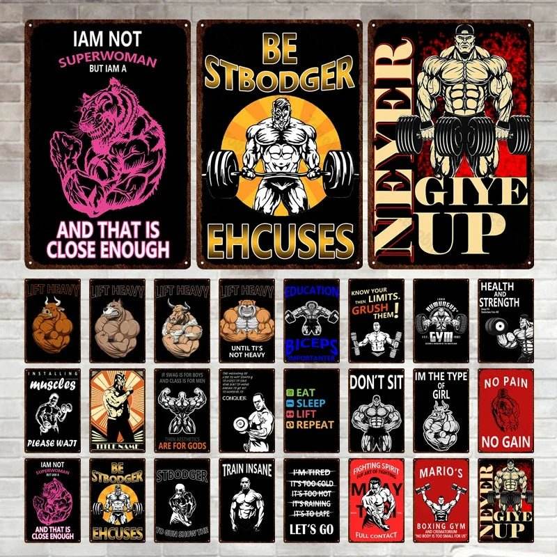 The sign features bold, eye-catching designs that stand out on any wall. With a collection of motivational phrases and striking images, it’s not just a decor piece but a statement of strength and perseverance. The vibrant colors and dynamic graphics make it a focal point in any gym setting, encouraging everyone to push their limits.