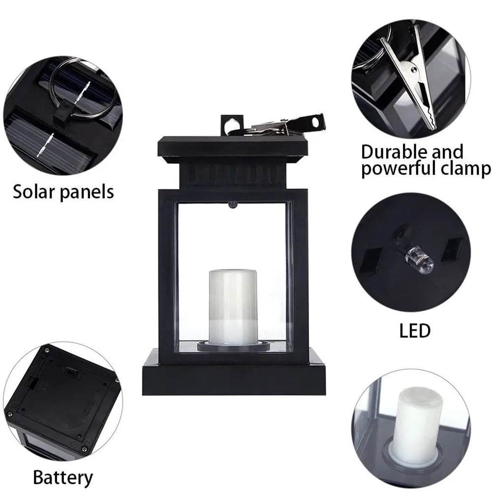 The images showcase the lantern's elegant design, featuring a classic shape with a modern twist. The soft, inviting glow creates a cozy atmosphere, perfect for evening relaxation or entertaining guests. The durable clamp and sturdy build ensure easy installation and reliable performance.