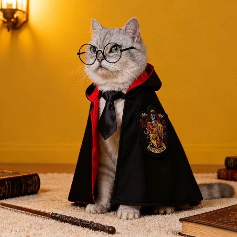 Available in vibrant colors like Green, Blue, Yellow, and Red, these costumes come in sizes S, M, and L to fit your pet perfectly. Each outfit features a whimsical design that resembles a magical school uniform, complete with a cape and tie, making your pet look like they just stepped out of a storybook.