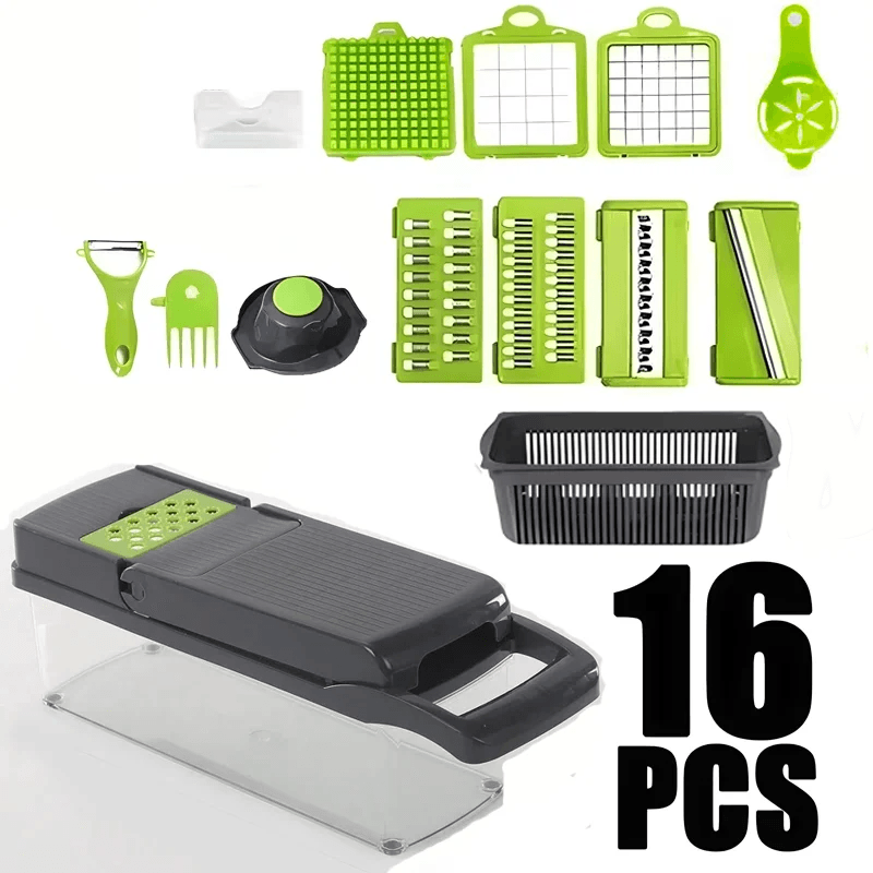 Featuring interchangeable grater blades, the Walfos Chopper allows you to effortlessly shred, slice, and dice your favorite fruits and vegetables. The clear container catches every slice, keeping your kitchen tidy. Choose between the 16-piece or 14-piece set to suit your culinary needs.