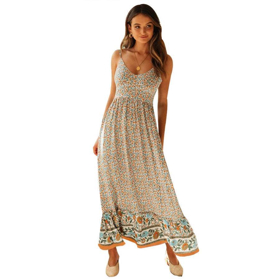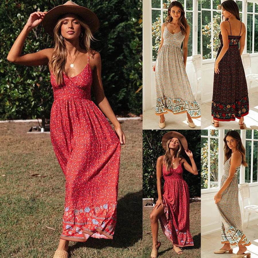Step into a world of carefree elegance with the Women Bohemian Halter Floral Swing Maxi Dress. Perfect for those who adore a bohemian-inspired look, this dress features a charming halter neckline and a delightful floral pattern that exudes a feminine and relaxed vibe. Crafted from lightweight, flowy fabric, it ensures comfort and style for any occasion, whether you're at a summer festival or a beachside brunch.