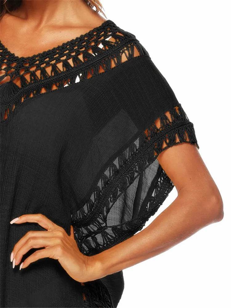 Women Crochet Cover Up Solid Swimsuit Beach Dress
