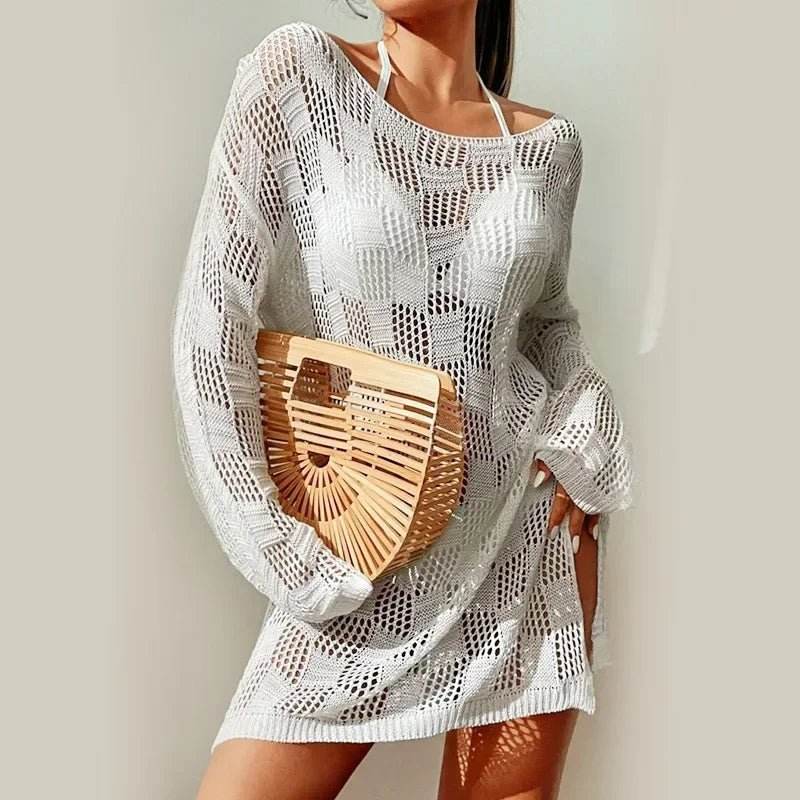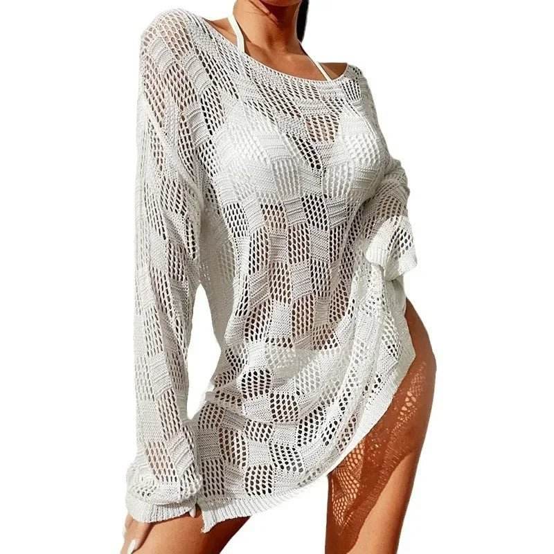 This cover-up features a beautiful hollow-out design that adds a touch of elegance to your beachwear. Available in a variety of colors including white, khaki, and black, you can choose the perfect shade to match your bikini. With sizes ranging from S to L, it ensures a perfect fit for everyone.