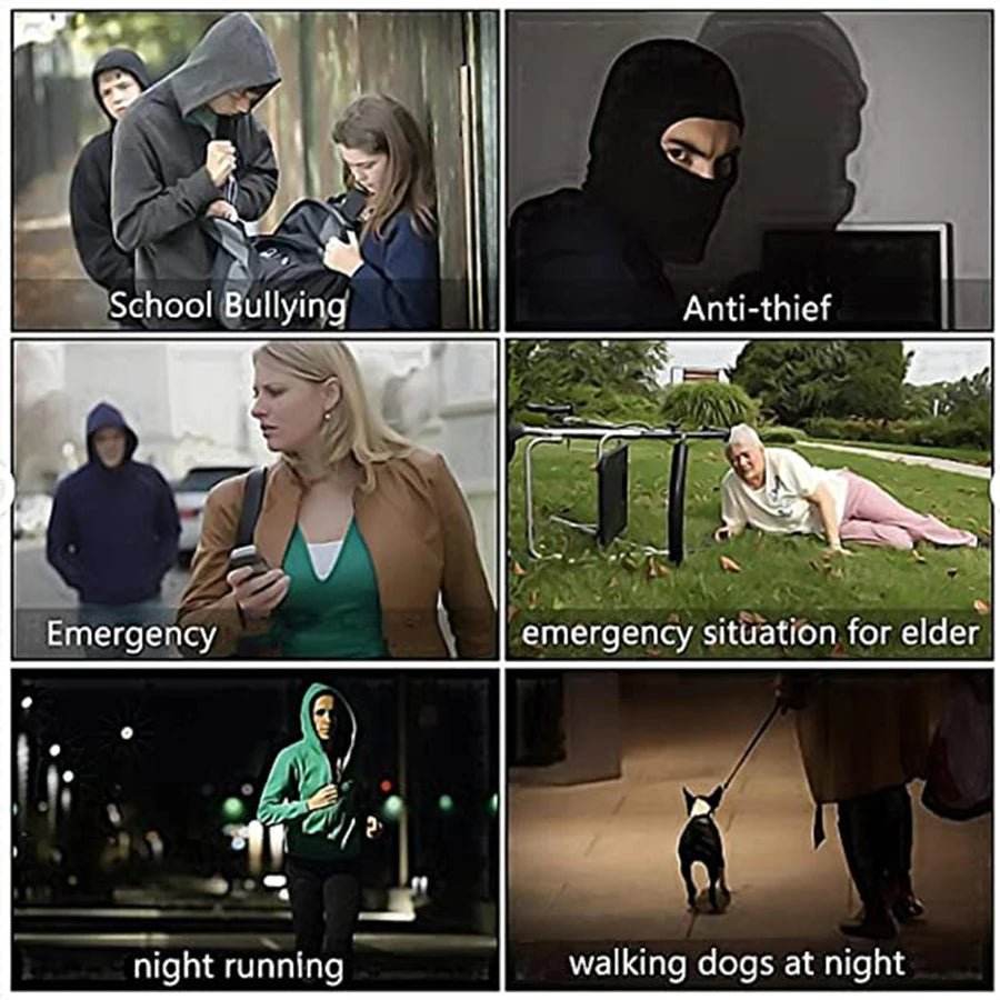 • Personal Alarm: Emits a loud 130dB sound to alert others and deter potential threats.