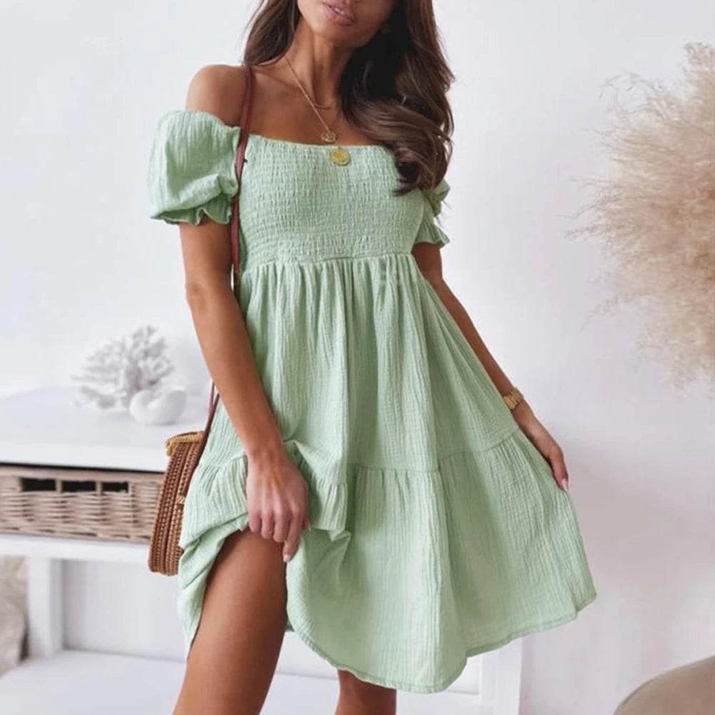 Whether you're heading to a picnic or a summer party, this dress is your go-to choice. Pair it with sandals for a laid-back look or dress it up with heels and accessories for a night out. The dress comes in multiple colors, allowing you to choose the perfect shade to match your style.
