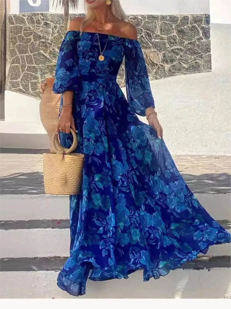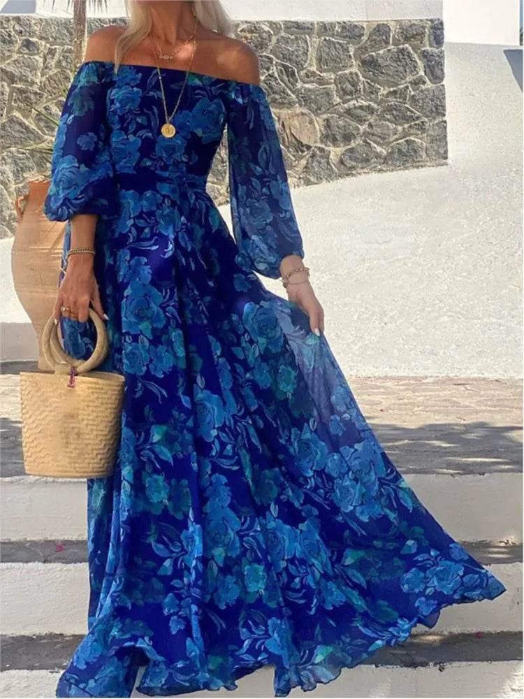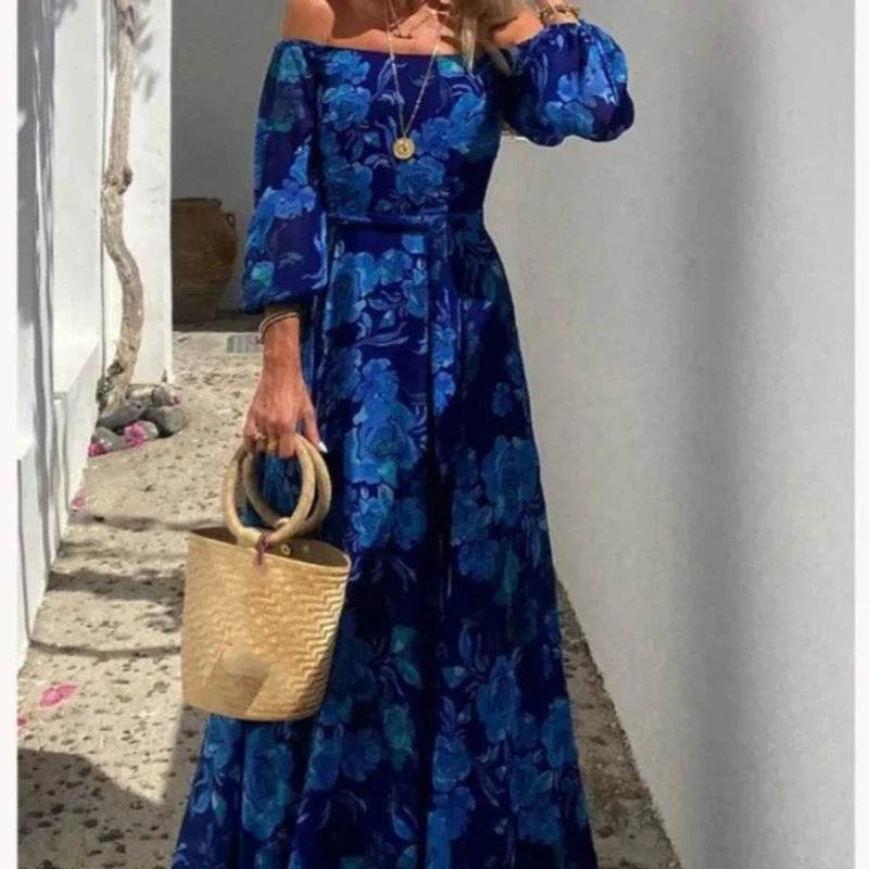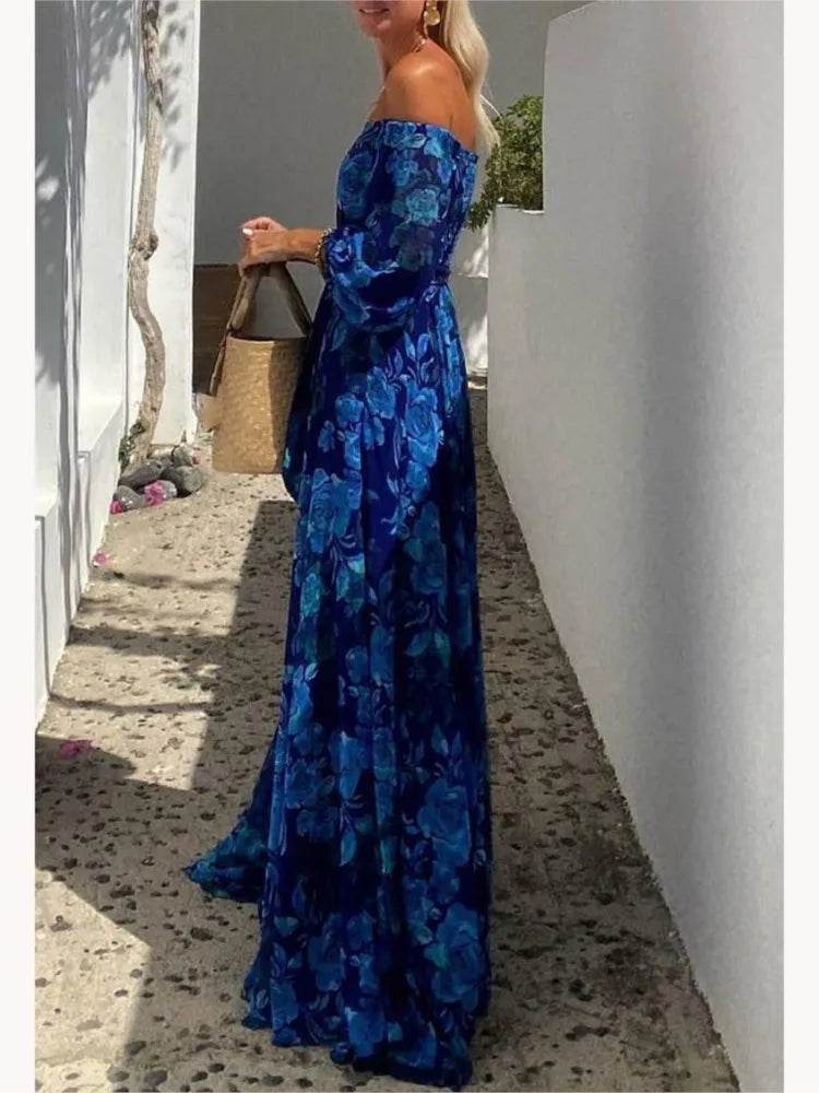 Embrace Elegance with the Slash Neck Blue Maxi Dress