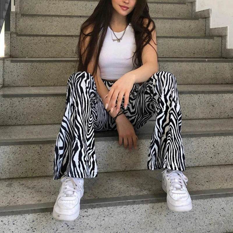 Elevate your summer wardrobe with these Women Summer Zebra Striped Flare Pants and embrace the perfect blend of comfort and style.
