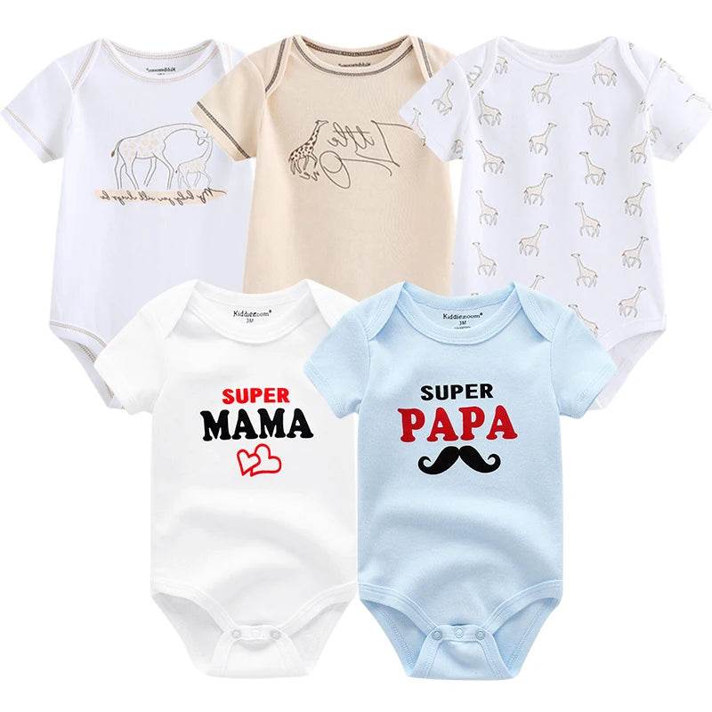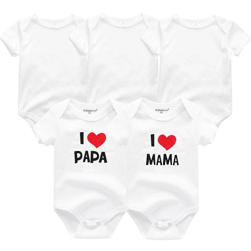 The rompers come in a variety of fun designs, including charming animal prints and heartwarming messages like "I ♥ Mama" and "I ♥ Papa." These delightful patterns are sure to bring smiles to both parents and babies alike.