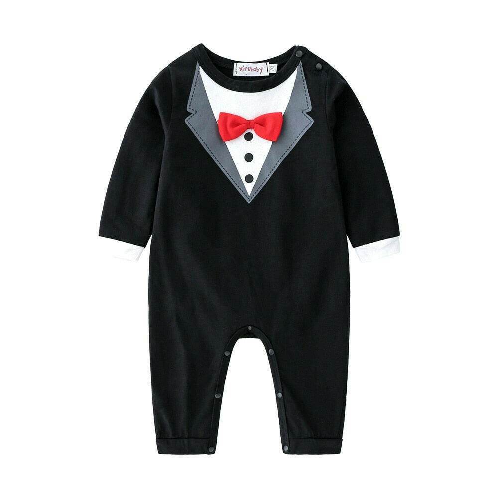 Whether it's a family gathering, a photoshoot, or just a day out, these rompers add a touch of charm to your baby's wardrobe. The elegant design is complemented by a cute red bow tie, making it a standout piece in any setting.