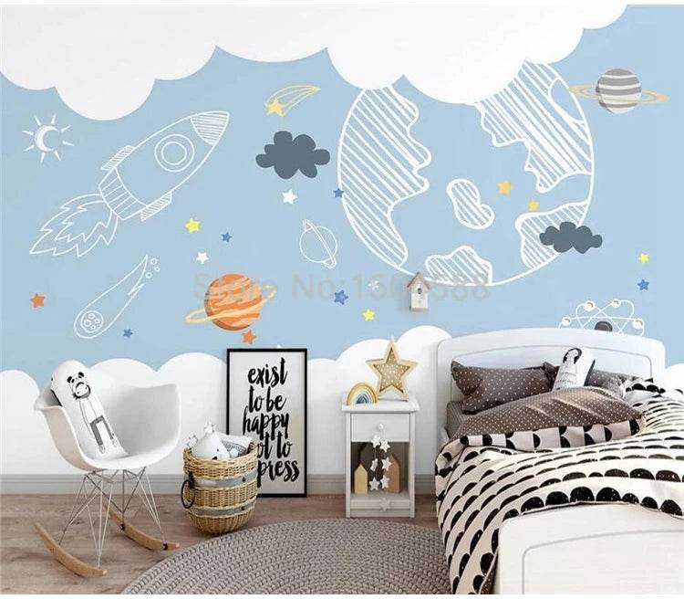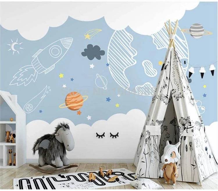 Explore the universe from the comfort of your home with the Custom 3D Minimalist Space Mural Wallpaper. Let your walls tell a story of adventure and discovery, and watch as your space transforms into a whimsical wonderland.