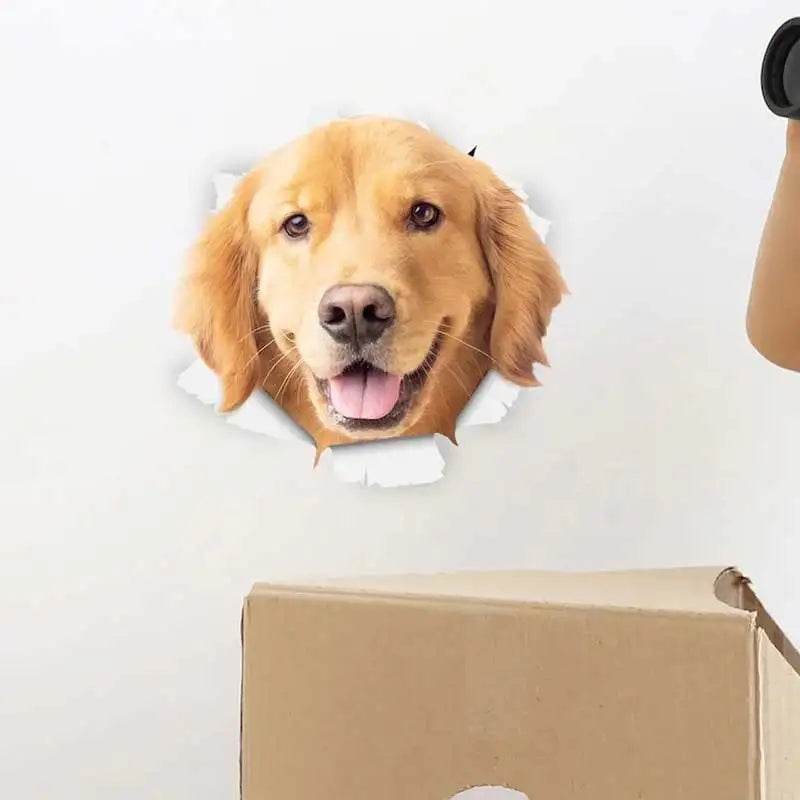 The images showcase a variety of cute dogs, each with a unique expression, making them perfect for dog lovers. The 3D effect adds depth and personality, making these stickers a standout piece in any room.