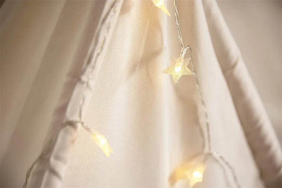 The tent's neutral color options blend seamlessly with any decor, making it a stylish addition to your child's room. The images showcase the tent's versatility, from a serene indoor setting to an exciting outdoor play area, highlighting its adaptability and charm.
