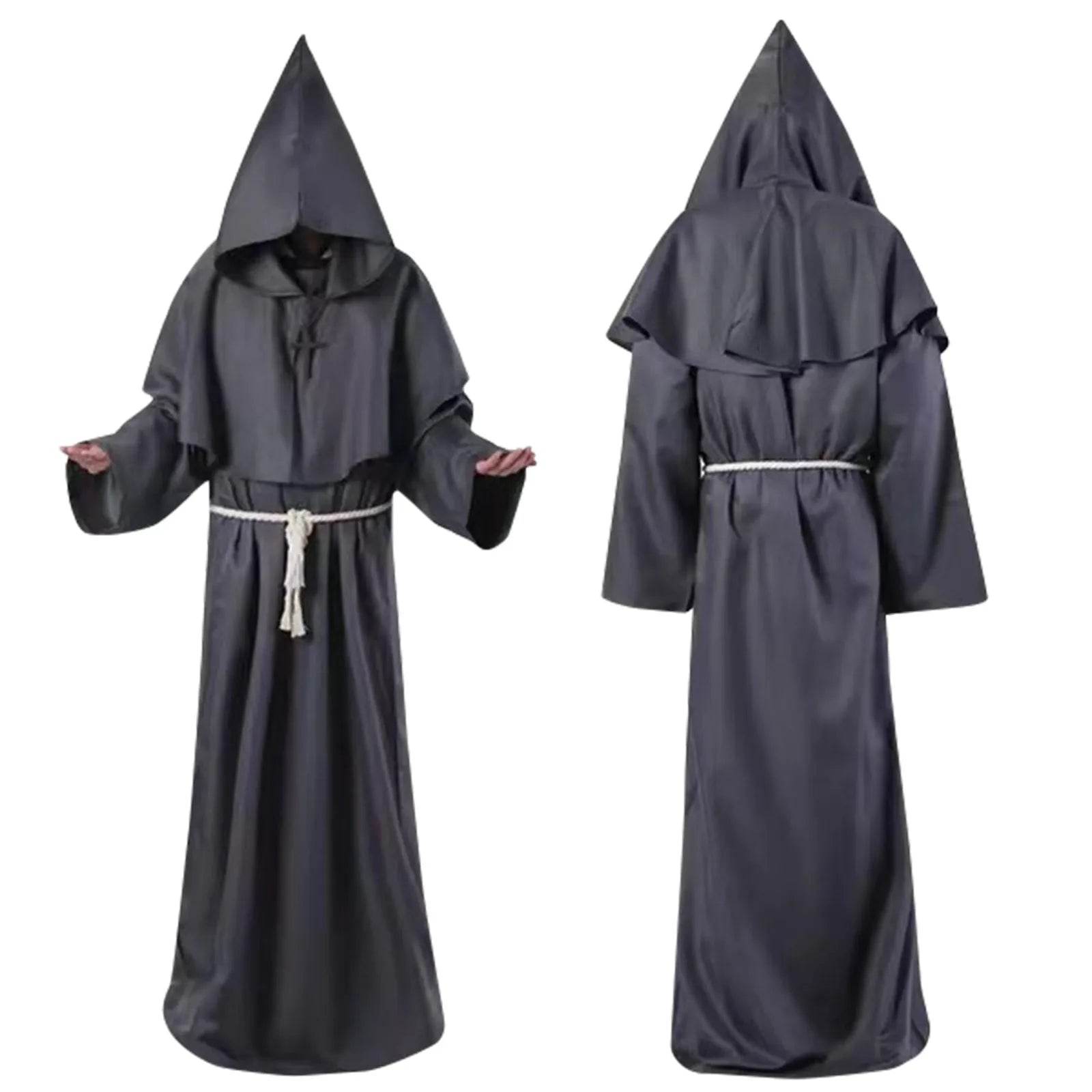 Transform into a character from the Middle Ages with our Medieval Monk Hooded Cape Men Costume Wear. Perfect for Halloween, cosplay, or themed events, this costume captures the essence of medieval times. Available in a variety of colors including Black, Coffee, White, Wine, Royal Blue, and Dark Gray, you can choose the shade that best suits your style.