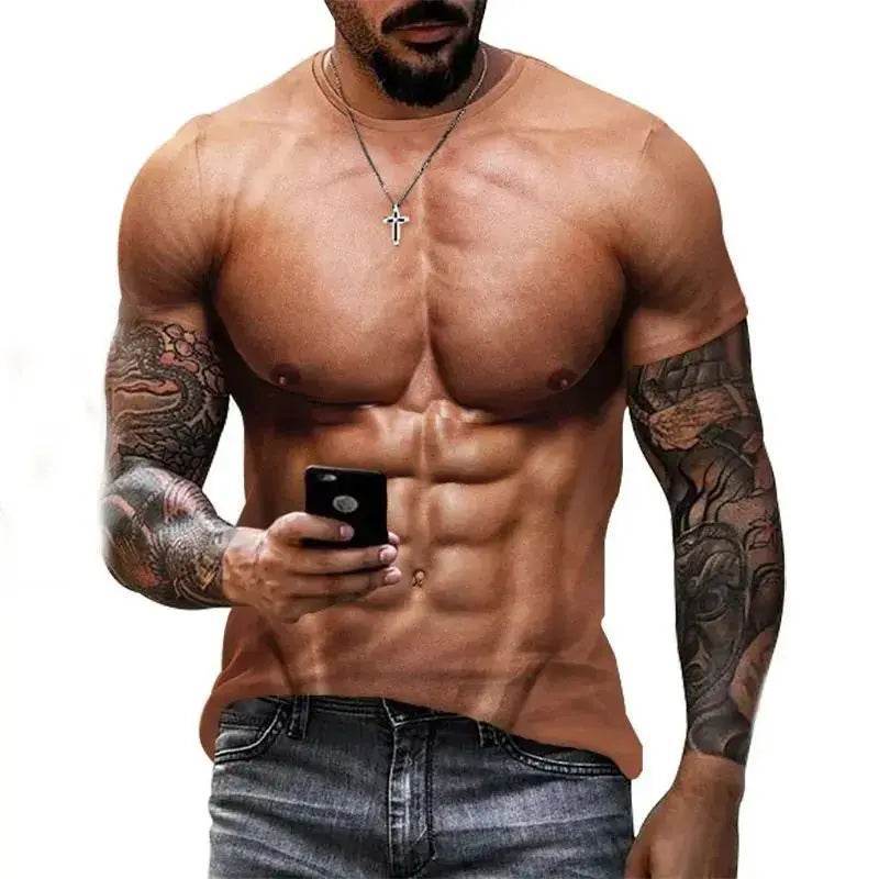 The shirt features a realistic 3D print that mimics a muscular physique, making it a fun and eye-catching addition to any outfit. The detailed design and vibrant colors ensure you'll stand out in any crowd.