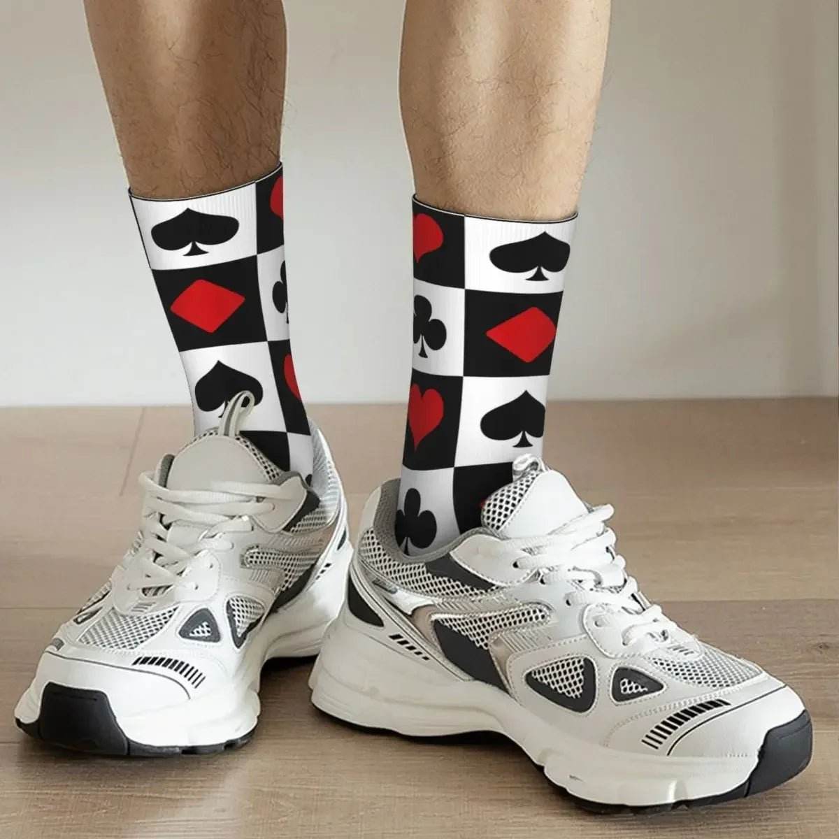 Whether you're a trendsetter or a poker aficionado, these socks are designed to complement your lifestyle. With their unique design and superior comfort, they are more than just socks—they're a statement. Elevate your style and enjoy the perfect blend of fun and function with the Men 3D Playing Poker Card Crew Socks.