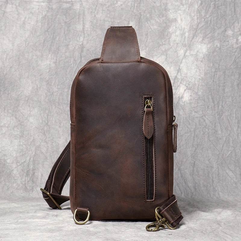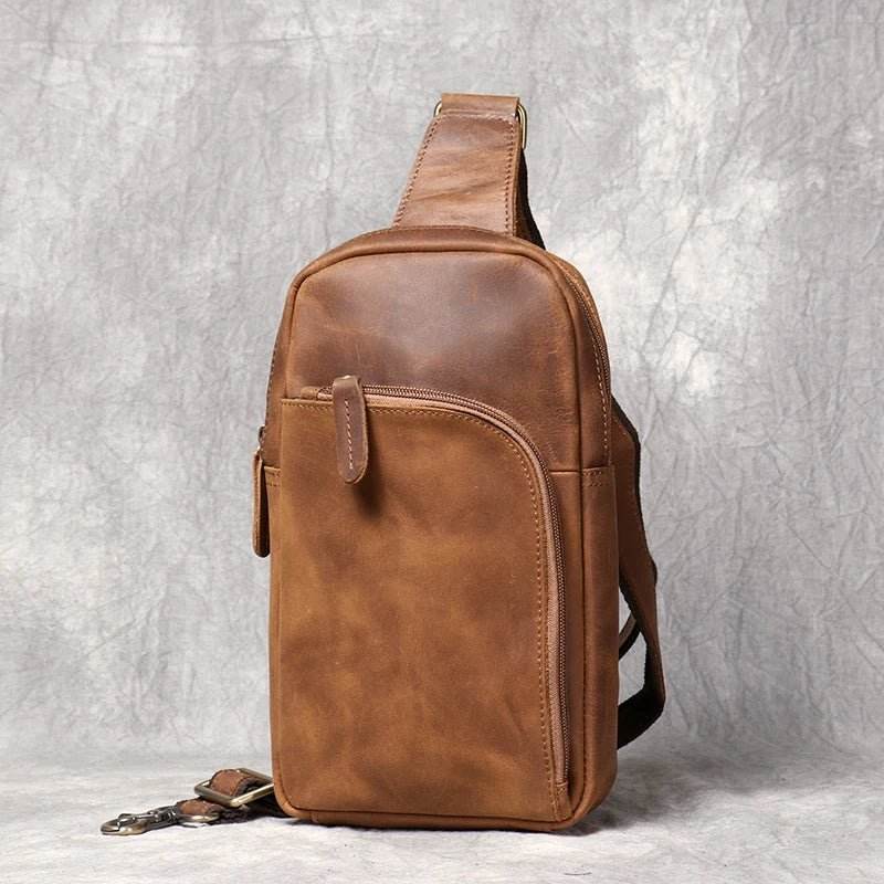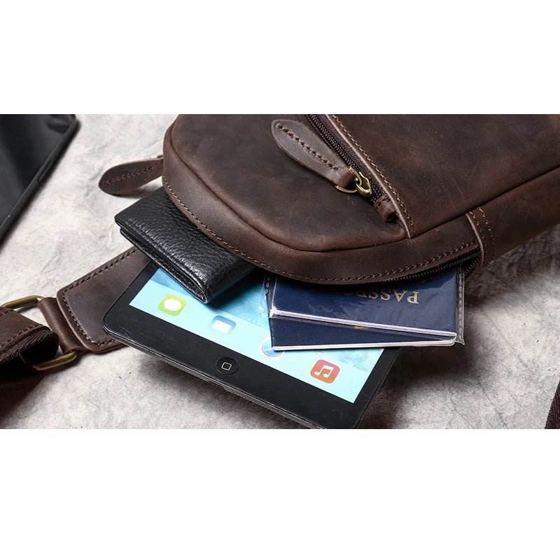Stylish & Functional: Men Leather Chest 7.9in Crossbody Bag