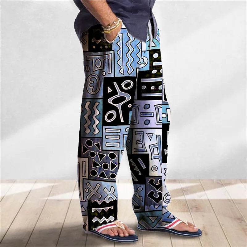 The bold geometric patterns and vibrant colors make these pants perfect for any casual outing or vacation. Available in a range of sizes from M to XXXL (European sizes), they cater to a variety of body types. Choose from multiple color options to match your personal style. These pants are not just about looks; they offer a relaxed fit that allows for easy movement, making them ideal for active days.