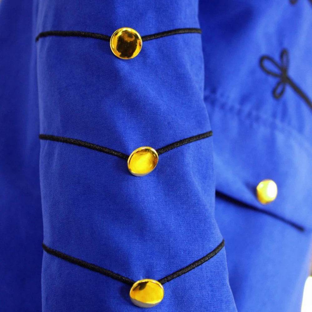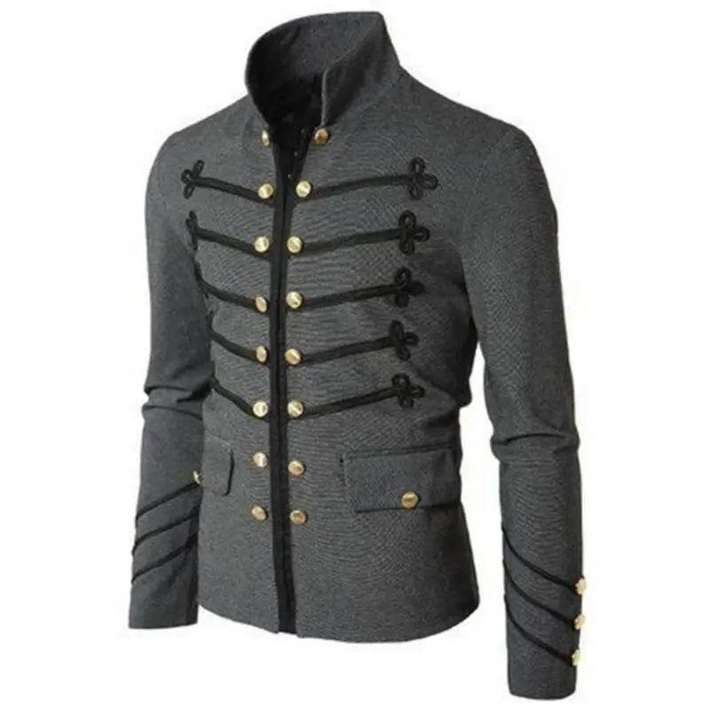 Made to last, this jacket features intricate detailing and a unique design that transports you back in time. The jacket is available in striking colors like black, blue, and gray, allowing you to choose the perfect hue to match your style. The high collar and decorative buttons add a touch of elegance, while the tailored fit ensures comfort and sophistication.