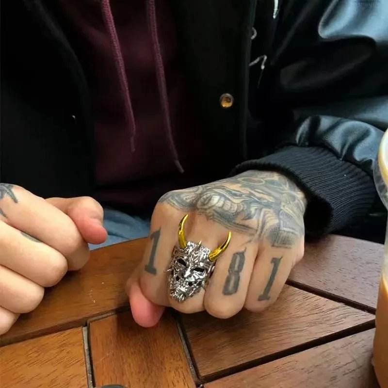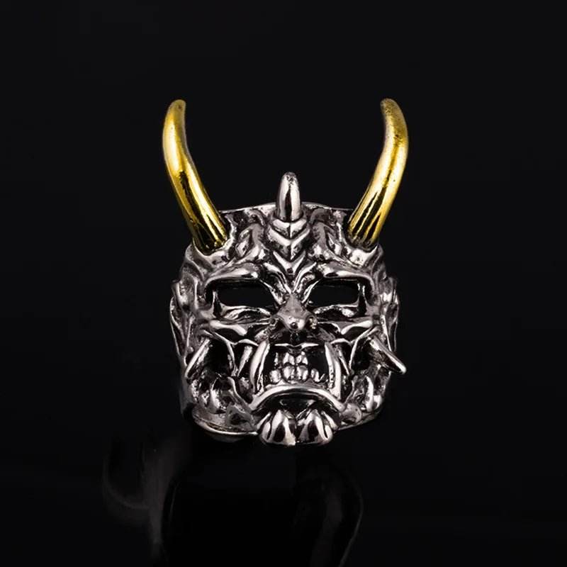 The pendant features a fierce Viking-inspired design, complete with intricate details and a striking combination of metal colors. The horns and facial features are meticulously crafted, giving it a bold and powerful look that stands out.