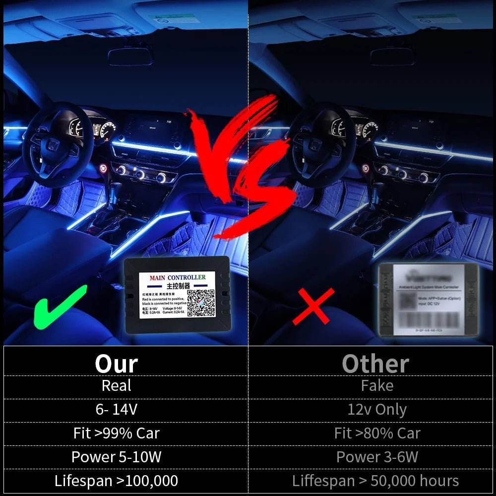 Designed for easy installation, the RGB LED strips fit seamlessly into any vehicle. Whether you're cruising down the highway or parked at a car meet, these lights will make your car stand out. The system includes a main controller module and sub-controller modules for comprehensive control over your lighting setup.