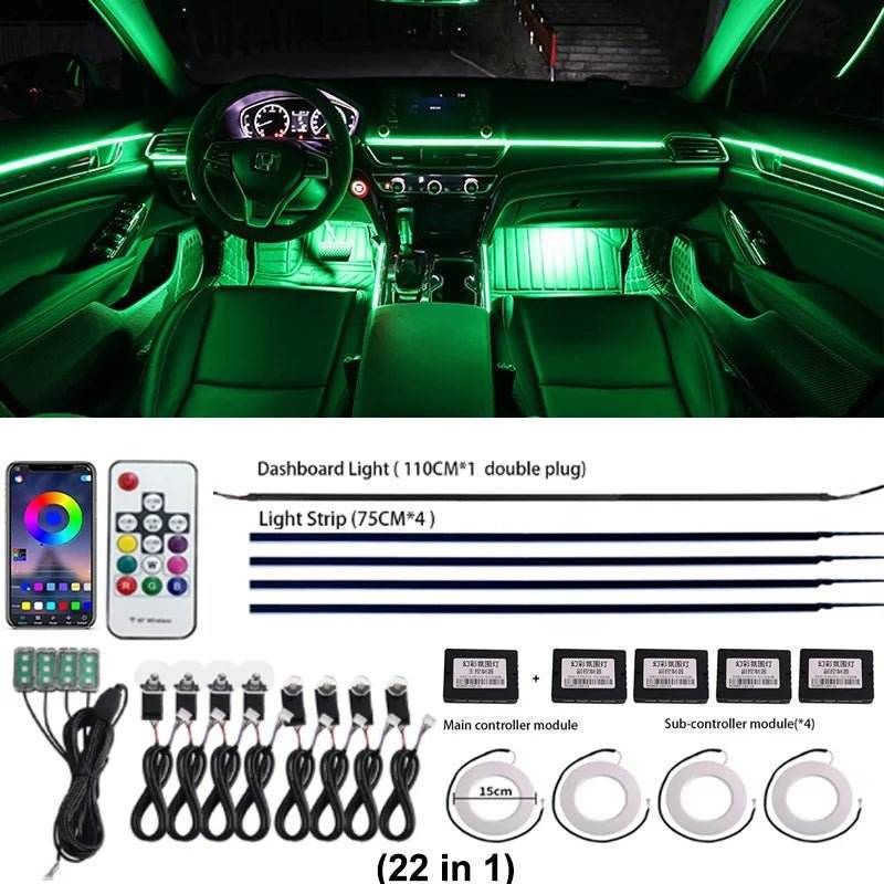 Choose from options like 14 in 1 Symphony or 22 in 1 Not Rainbow to find the perfect lighting setup for your car. The included remote control makes it easy to switch colors and adjust brightness, ensuring your car's interior always matches your style.