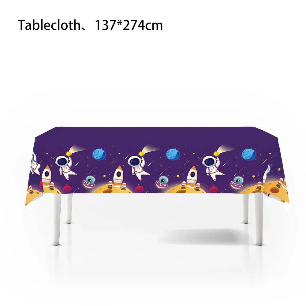 The tableware features playful astronauts, rockets, and planets set against a starry backdrop. The images show a beautifully coordinated setup, with matching plates, cups, and decorations that will delight both kids and adults.