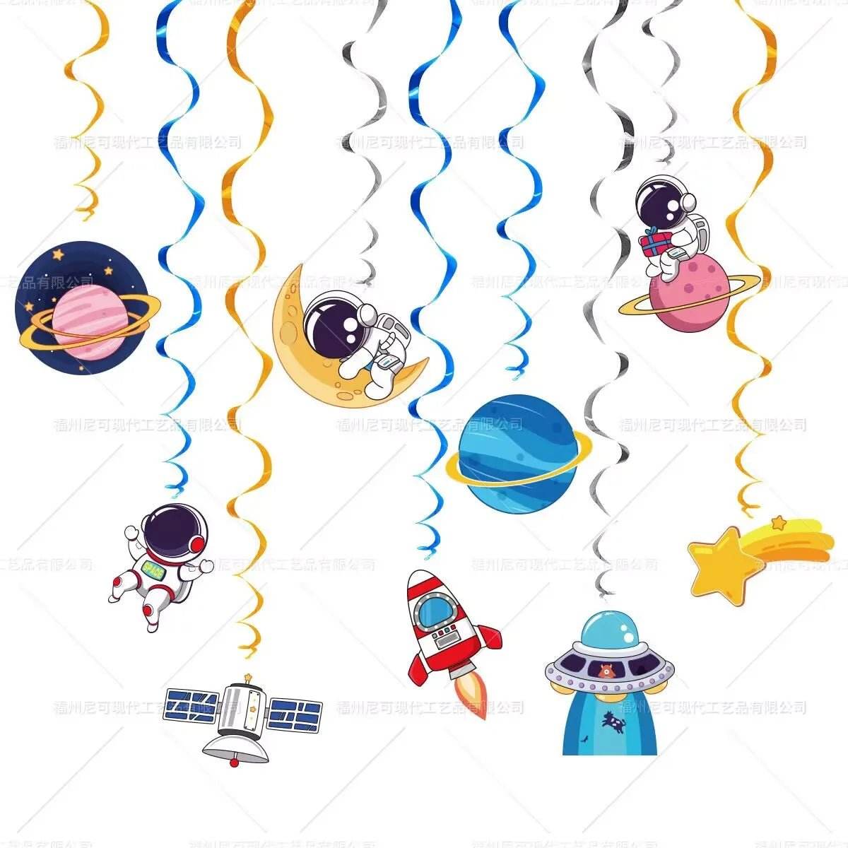 - Decor: 1set banner, 9pcs hanging spin, and more