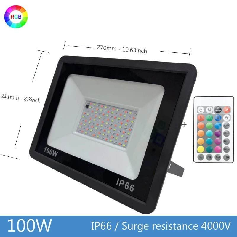 Featuring advanced LED technology, the Timeable RGB LED Outdoor Floodlight provides professional-grade lighting solutions. Choose from different power options—10W, 30W, 50W, or 100W—to match your specific requirements.