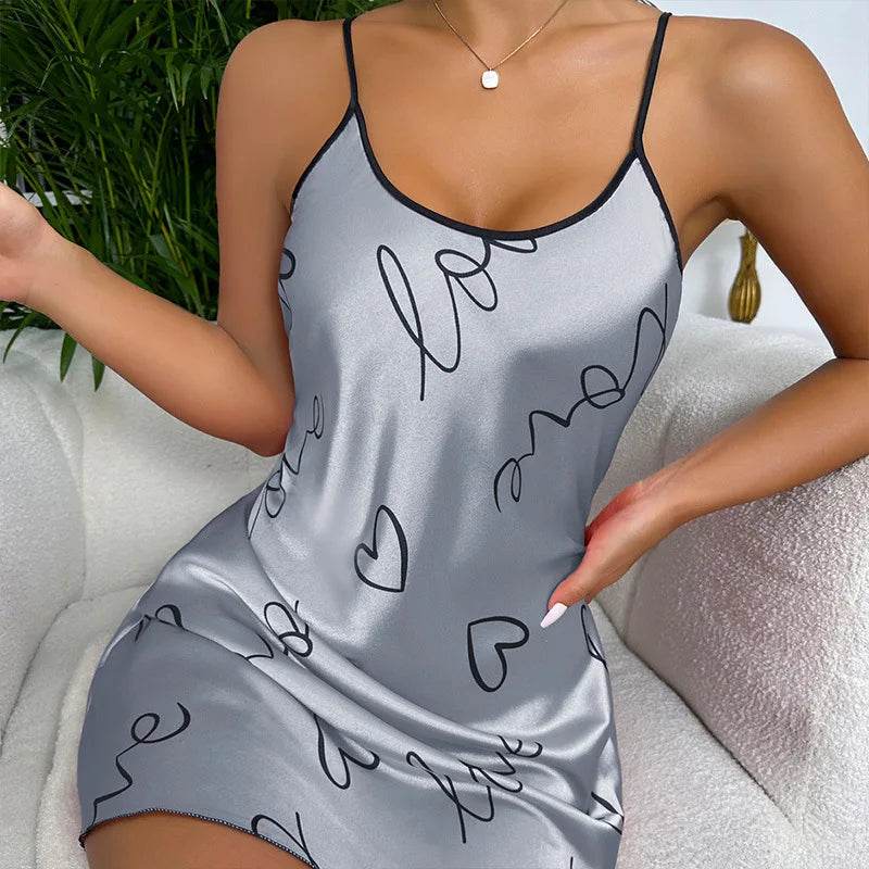 The images showcase the nightgown's sleek fit and vibrant patterns, highlighting its ability to make bedtime both stylish and fun. The satin fabric drapes beautifully, ensuring you feel as good as you look.