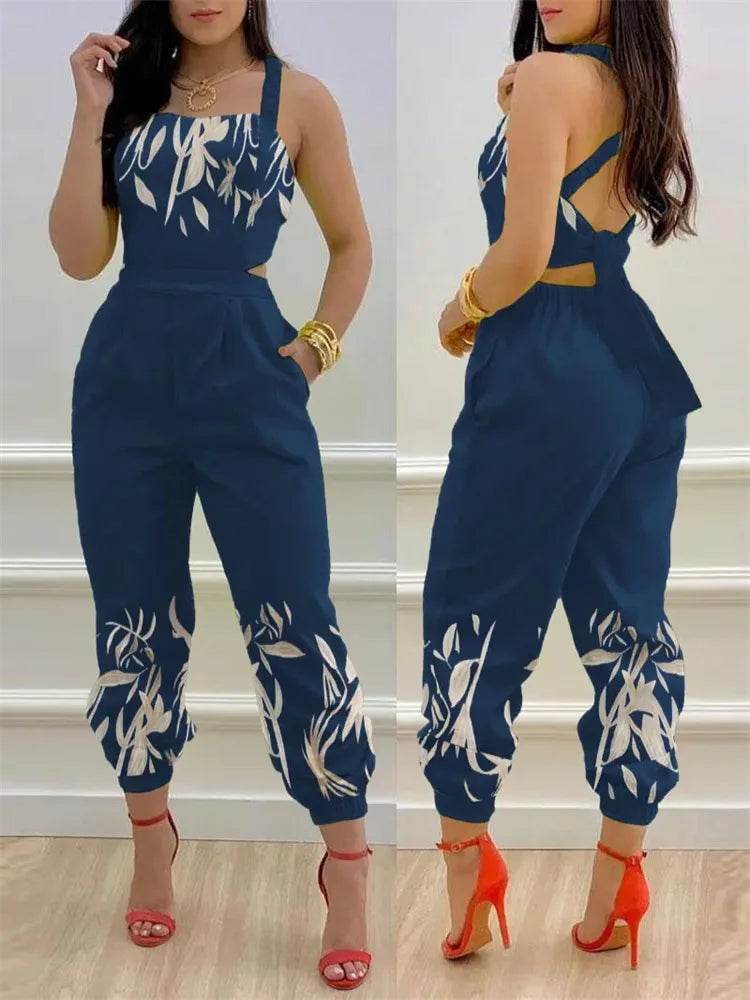 Upgrade your wardrobe with the Women Backless Blue Bow Casual Jumpsuit and make every casual outing a stylish affair!