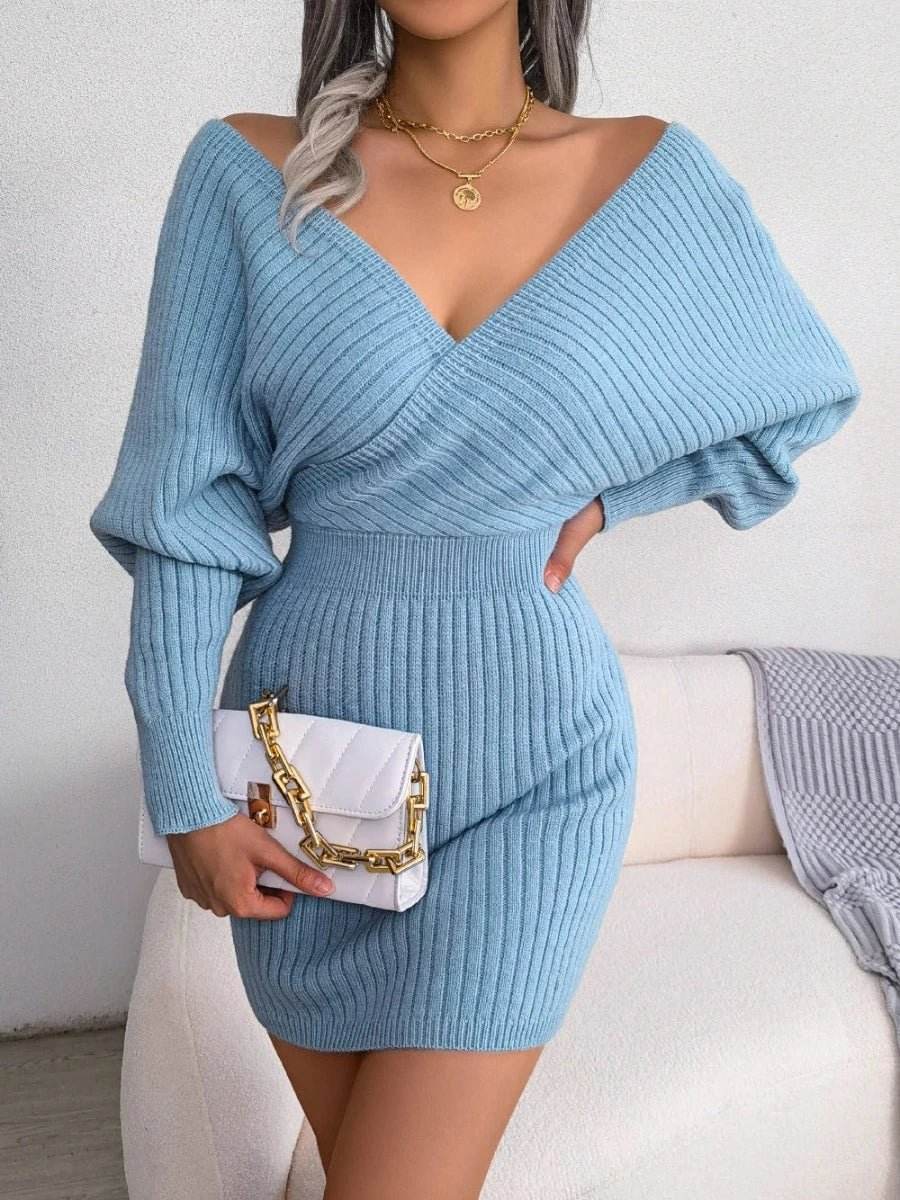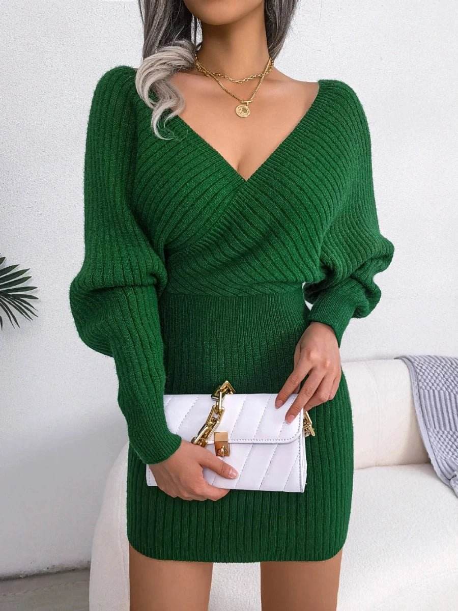 Whether you're heading to a brunch with friends or a night out, this dress adapts to any setting. The deep V-neckline adds a touch of sophistication, while the long sleeves keep you cozy during cooler months. Available in a range of colors including Black, Green, Ivory, Sky Blue, and Lavender, you can choose the one that best suits your style.