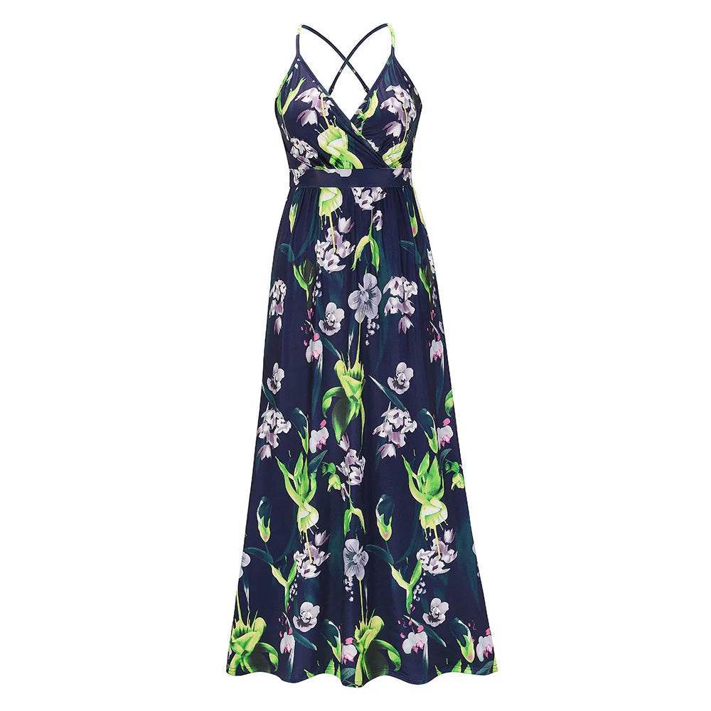 This maxi dress features a vibrant, eye-catching pattern that captures the essence of bohemian chic. The flowing fabric and spaghetti straps add a touch of grace and femininity, making it perfect for both casual outings and special events. Available in a variety of colors including Dark Grey, Green, Sky Blue, and more, and sizes ranging from S to XXL, there's a perfect fit for everyone.