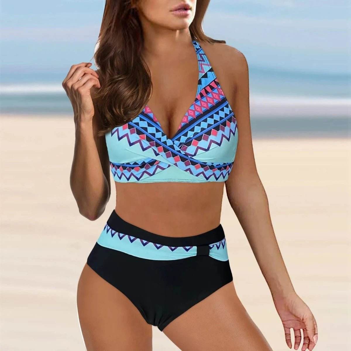 The tankini features a stunning gradient 3D blue design that offers a unique and trendy look. The vibrant colors range from Sky Blue to Dark Blue, ensuring you find the perfect shade to match your style. The crisscross top adds a touch of elegance, while the high-waisted bottoms provide comfort and coverage, making it ideal for any beach activity.