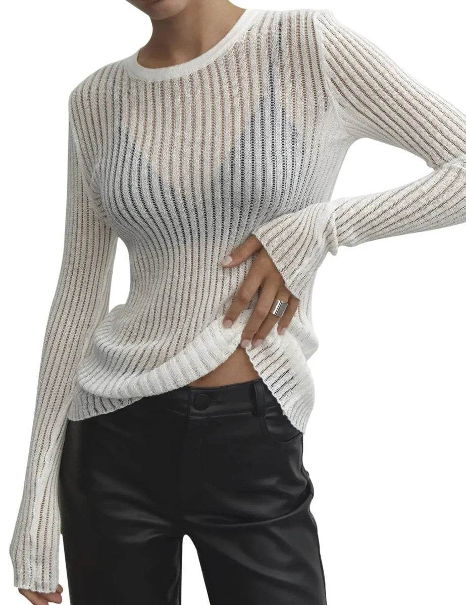 With its versatile design, this top can be effortlessly dressed up or down. Pair it with jeans for a casual day out or with a skirt for a night on the town. The transparent fabric adds a subtle allure, making it ideal for both everyday wear and special occasions.