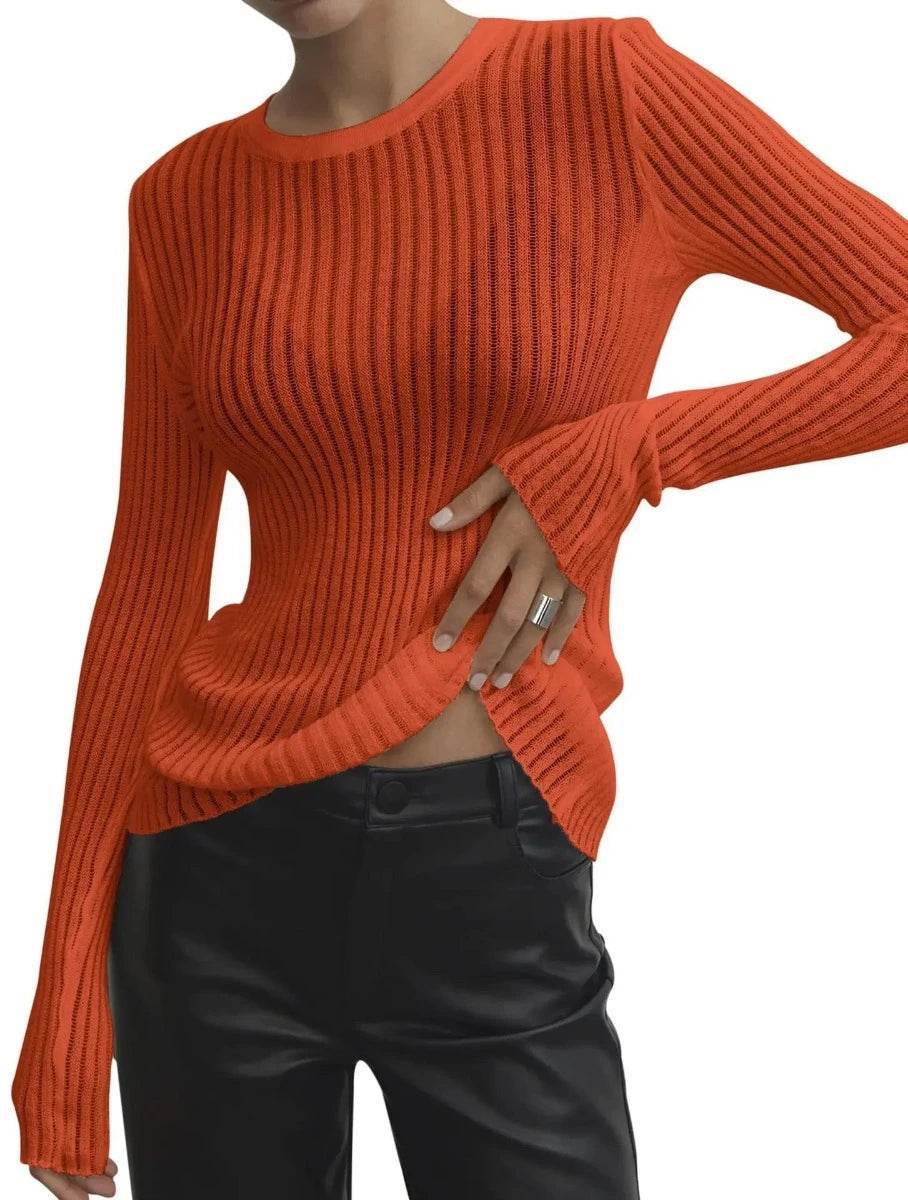 Stylish & Versatile: Women’s Pink Black Transparent Long O-Neck Tops Sweater