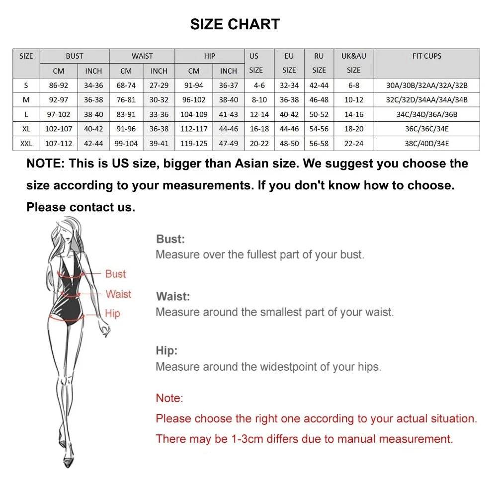 Size Bust (inches) Waist (inches) Hip (inches) XS 30-32 22-24 32-34 S 32-34 24-26 34-36 M 34-36 26-28 36-38 L 36-38 28-30 38-40 XL 38-40 30-32 40-42 2XL 40-42 32-34 42-44
