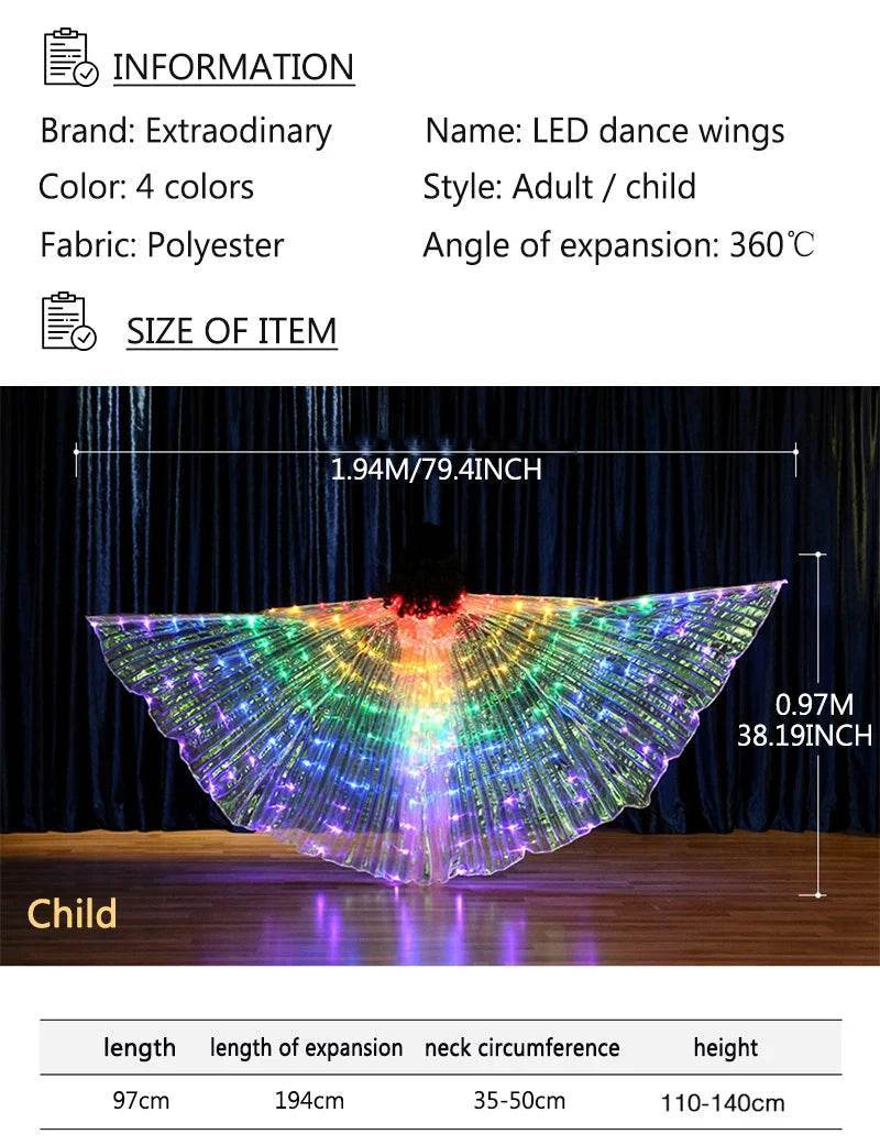 Whether you're performing at a belly dancing event, a festive party, or a seasonal celebration, these wings are the perfect accessory. The vibrant LED lights create a magical atmosphere, making you the center of attention. Ideal for Halloween, Christmas, or any themed party, these wings add a touch of enchantment to your performance.