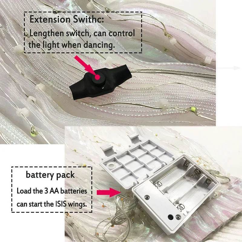 The images showcase the wings' breathtaking glow, with lights that shimmer and dance along with you. The wings spread wide, creating a stunning silhouette that captivates audiences. Perfect for performers who want to leave a lasting impression.