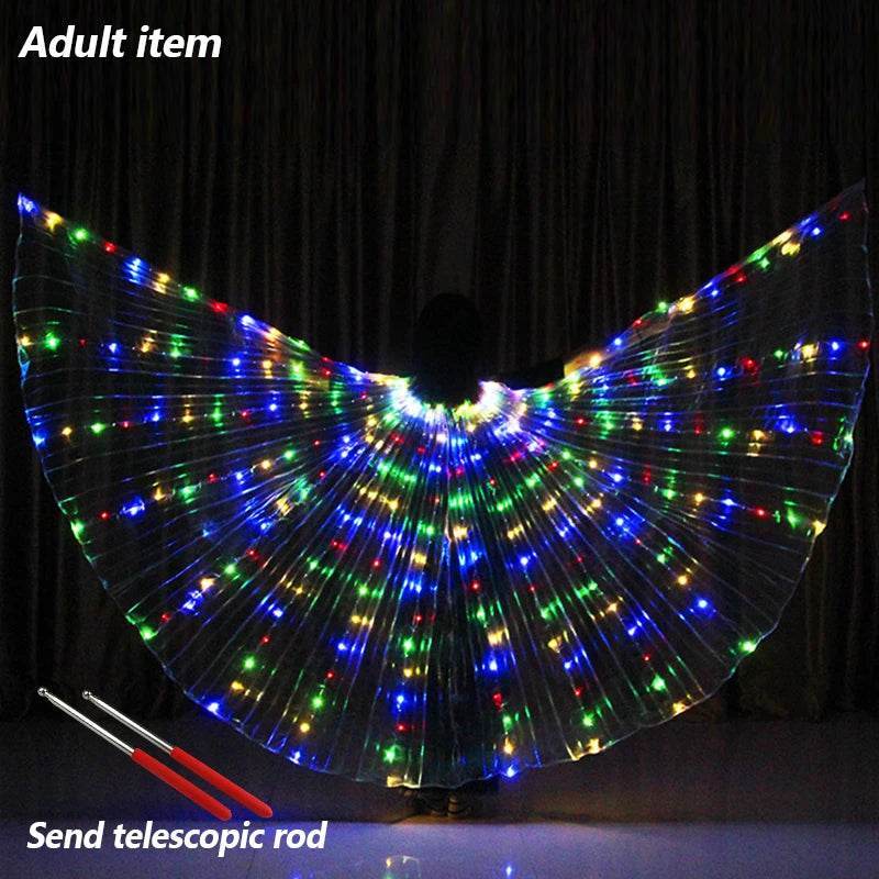 Transform your dance with the Women Rainbow LED Belly Dancing Wings and let your performance light up the night!