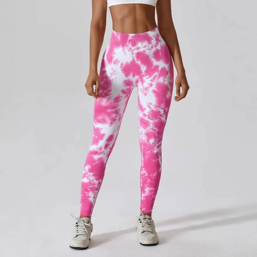 The images showcase the leggings' vibrant pink hue, which adds a pop of color to your workout wardrobe. The high-waisted design offers additional support and a trendy look, making these leggings a must-have for any fashion-forward fitness enthusiast.